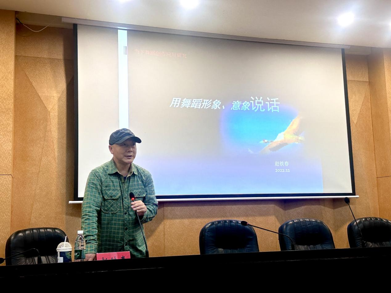 本次讲座主题为“舞蹈创作谈——用形象和意象说话”,由中国舞蹈家协会副主席、北京舞蹈学院教授、硕士生导师,曾任北京舞蹈学院副院长、中国国家大剧院副院长、北京舞蹈学院中国民族民间舞系主任、中国舞蹈博物馆常务副馆长、研究部主任赵铁春老师主讲。304am永利集团舞蹈系王光辉教授主持。舞蹈系主任陈鸿副教授、朱奕教授、吴兰、张丽华、徐大培等老师及本硕各级学生到场聆听。