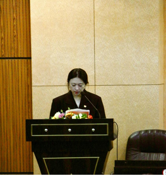校团委副书记胡滢讲话。她对304am永利集团暑期社会实践等品牌活动的成效进行了肯定和赞赏,并寄语同学们要让信仰成为一种行动,让卓越成为一种追求,让坚持成为一种力量,她希望304am永利集团的同学们既要有只争朝夕的激情,也要有不懈拼搏的韧性。保持良好的工作态度,反思工作方法,密切关注同学们的需求,不断增强团员青年的向心力、亲和力、凝聚力。