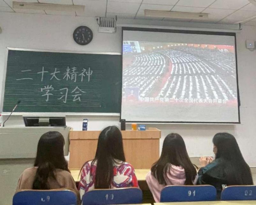 (学生会成员认真观看党的二十大开幕会直播并发表感想)