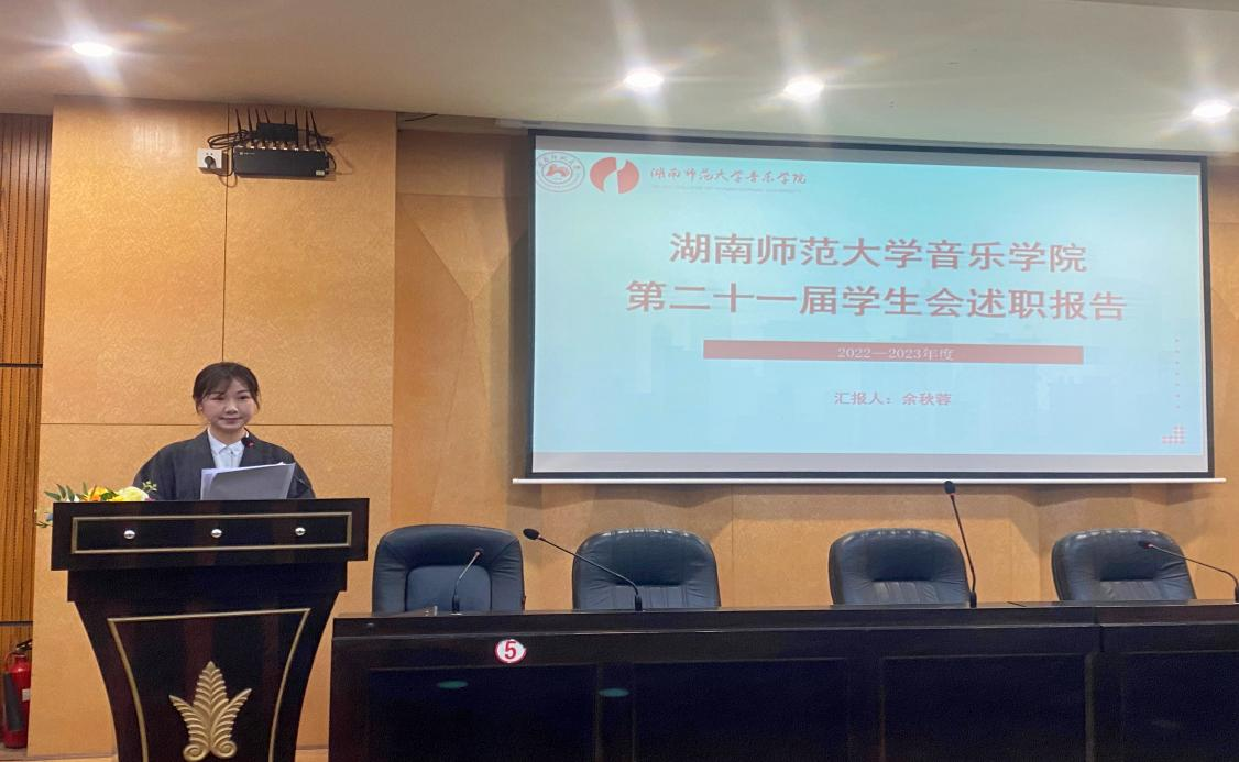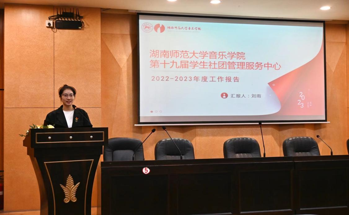 上一届团学组织各负责人汇报工作。曹艺婷、余秋蓉、刘雨、石梓宁四位同学分别就三会一中心本年度的工作作出总结与反思。
