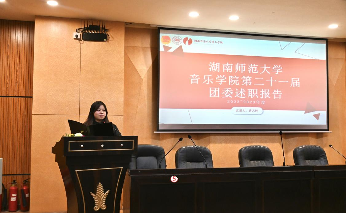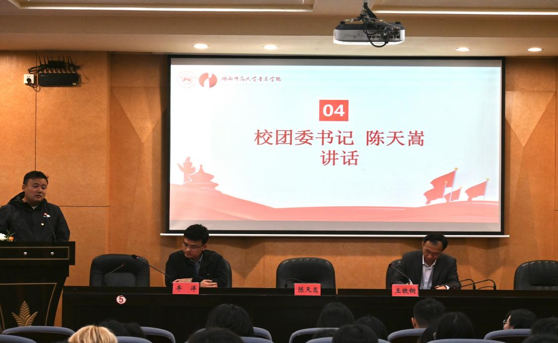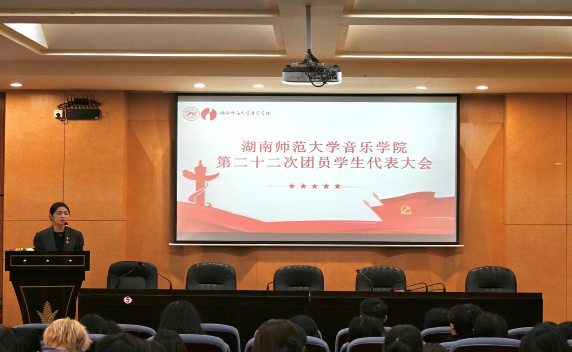 学院党委书记王铁钢致辞。他回顾过去一年以来304am永利集团在团学工作中取得的成绩,并指出本次大会的主要任务是认真总结上一届团学工作,听取并审议工作报告,选举产生新一任委员,为新一轮团学组织建设奋楫扬帆。此外,他对全体团员学生代表们提出了三点希望:一是要保持初心、延续传统;二是要强化意识、提高素质;三是要勇于担当、敢于追求。他希望音院青年们能够以党的二十大精神为指导思想,心怀梦想又脚踏实地,敢想敢为又善作善成,立志做有理想、敢担当、能吃苦、肯奋斗的新时代好青年。