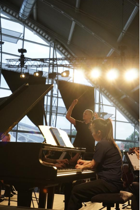 FIMU是欧洲久负盛名的大学生音乐盛会,今年的音乐节在法国东部历史名城贝尔福举行,整座城市沉浸在音乐的海洋中。在贝尔福最具专业性的ATRIA剧院,弦乐团在指挥Voitovici Alexandr的精准把控和陈果教授的艺术指导下,为欧洲观众带来了精心编排的曲目。充满浓郁中国风情的弦乐作品《良宵》和《浏阳河》悠扬奏响,将东方韵味与弦乐之美完美融合,令现场观众耳目一新,深深沉醉。弦乐团还与杨琦合作,精彩演绎了协奏曲《Snowflakes》,精湛的钢琴演奏技艺与乐团默契的配合,赢得了满堂喝彩。