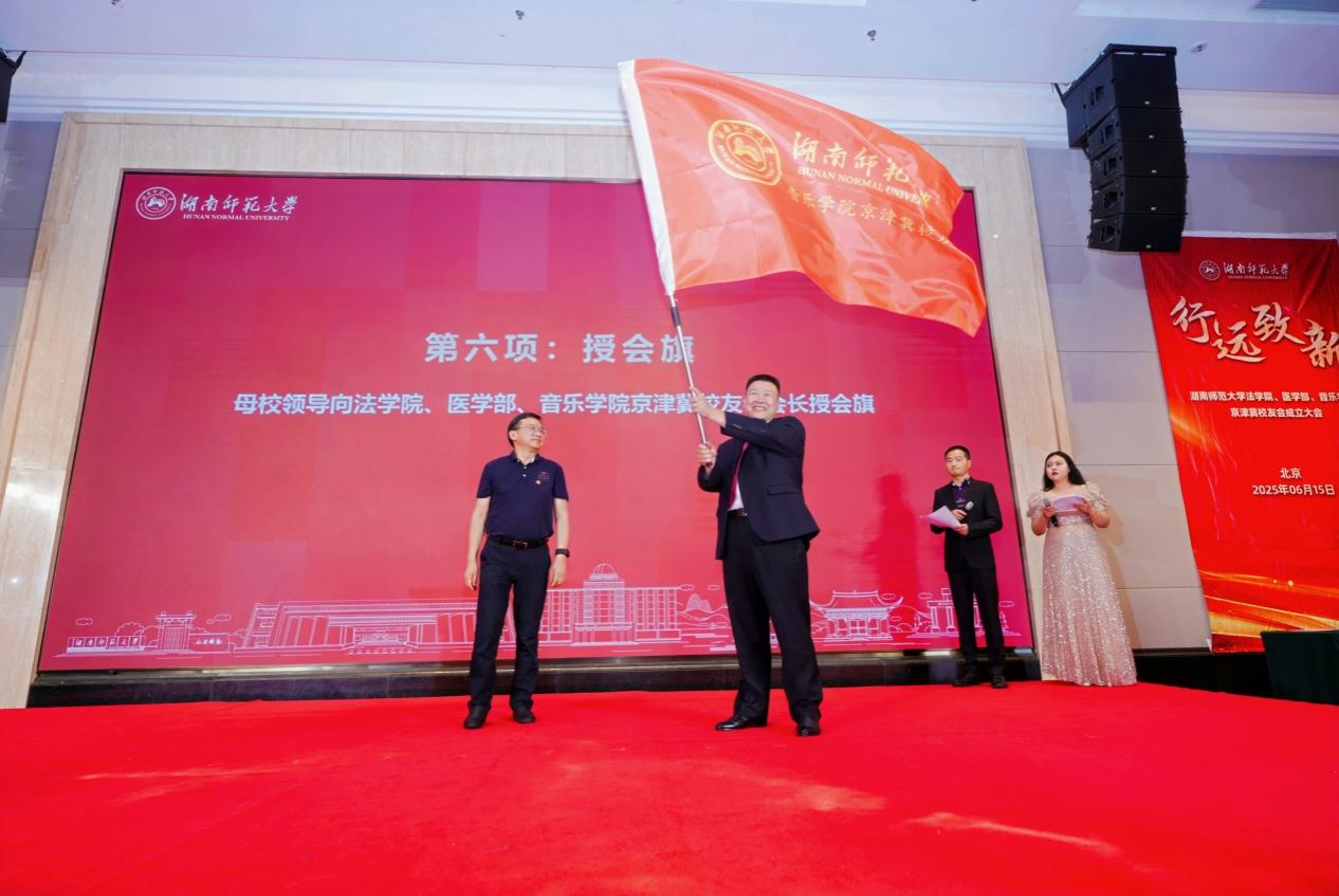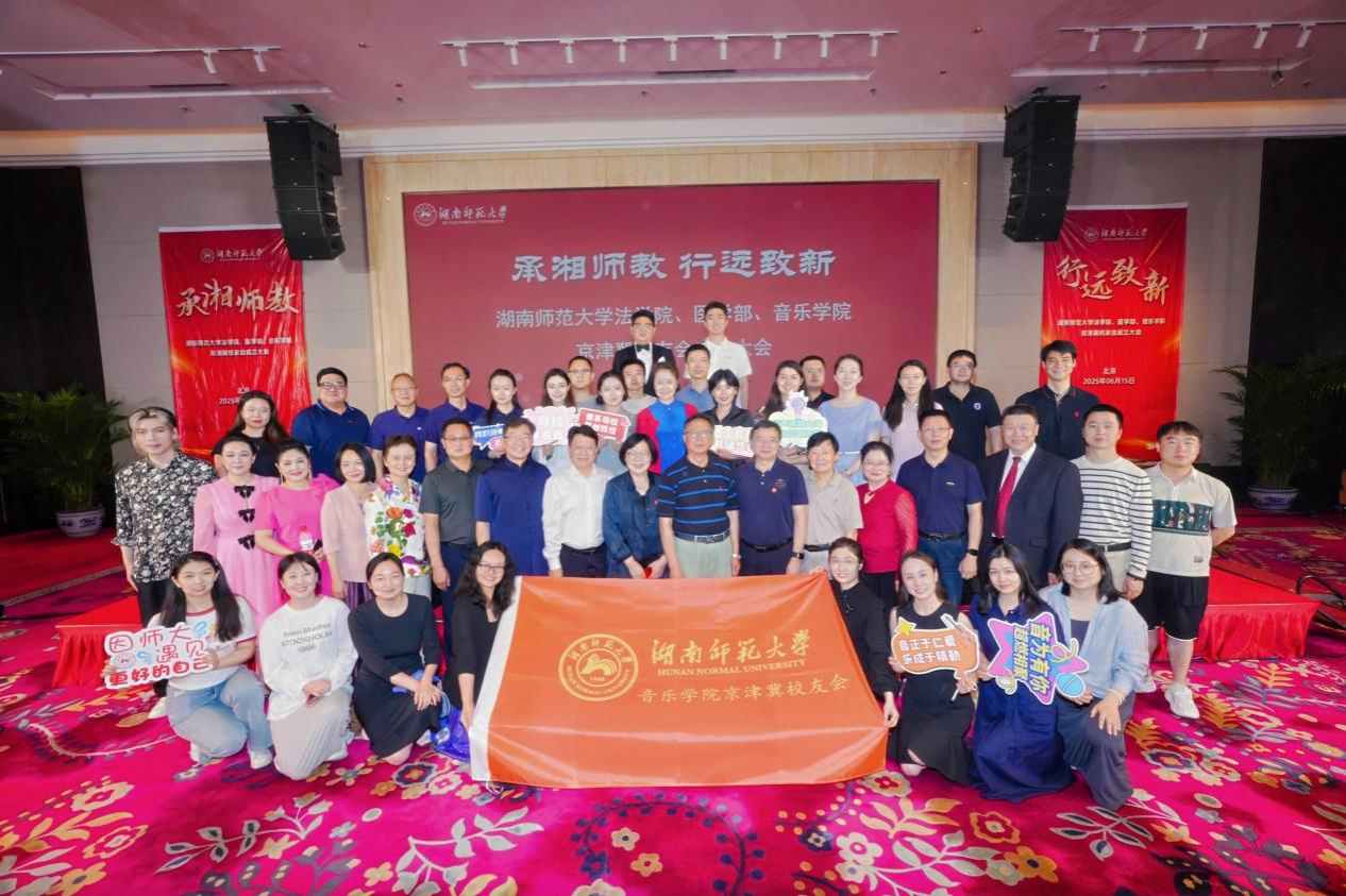 盛夏北京,湘情涌动。6月15日下午,304am永利集团与法学院、医学部京津冀校友会在北京联合举行成立大会。校党委委员、副校长刘怀德、原副校级督导、校关工委常务副主任徐书华、304am永利集团京津冀校友会会长黄百炼、校友总会副秘书长余志华、校团委书记陈天嵩、基础教育发展中心副主任周熠、校友总会联络部主任袁鑫出席,院党委书记王铁钢、副院长贺南辉、钢琴系老师葛俭、声乐系老师钱树林及学工办老师文佳豪参加。