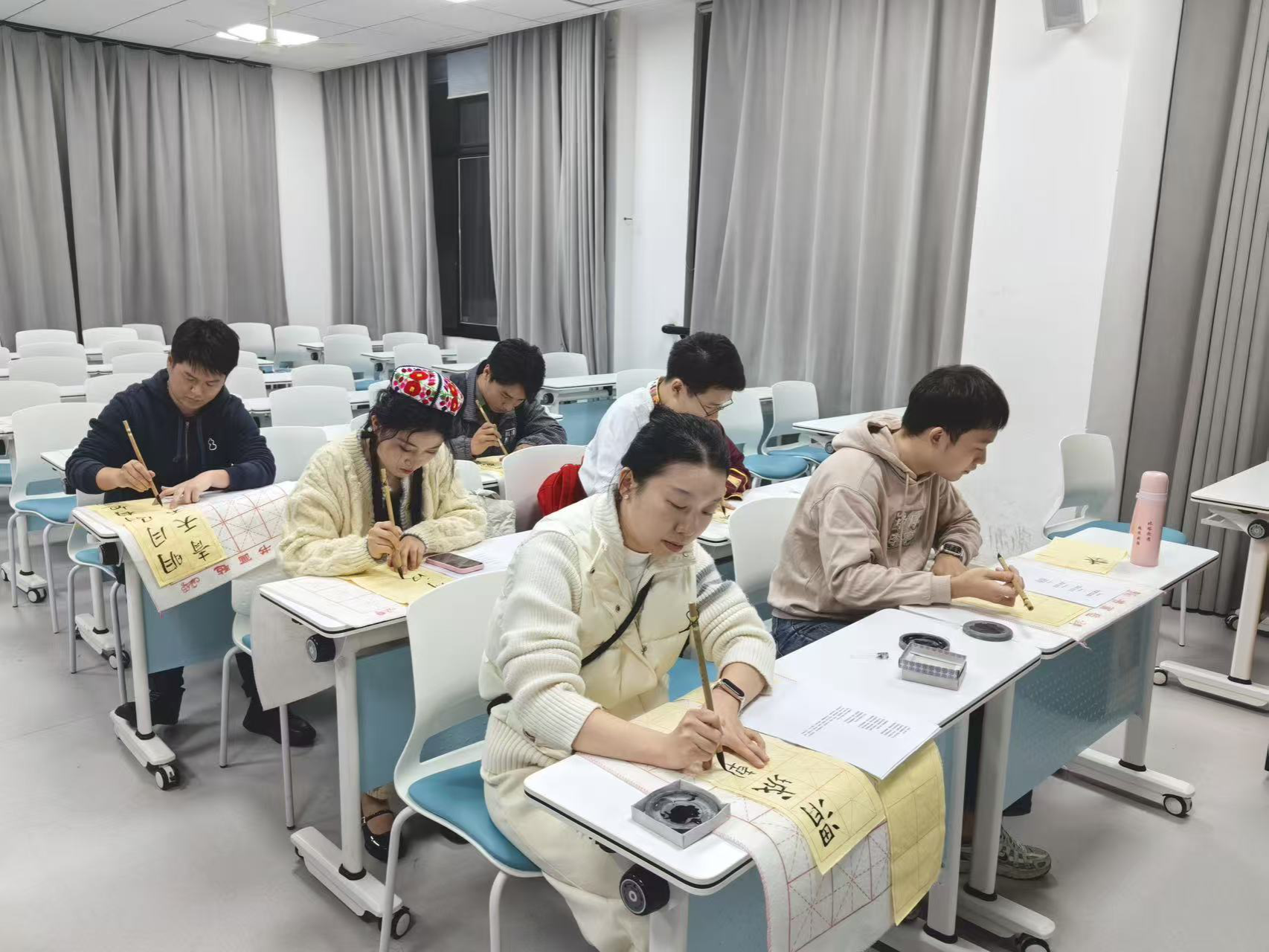 此次竞赛活动分为两个阶段。第一阶段为基础能力考核,选手需提交钢笔字作品与教学设计,从提交的作品与设计中,能清晰看到选手们对教学任务的整体把控与思考。第二阶段为现场综合能力展示,晋级选手全程从容不迫,在微课讲解环节,他们不仅逻辑清晰、教学内容组织得当,展现出优秀的课堂驾驭能力;同时,选手们还沉着专注地进行了书法技能展示,落笔生花、字迹工整,进一步展现了教师应具备的核心专业能力。