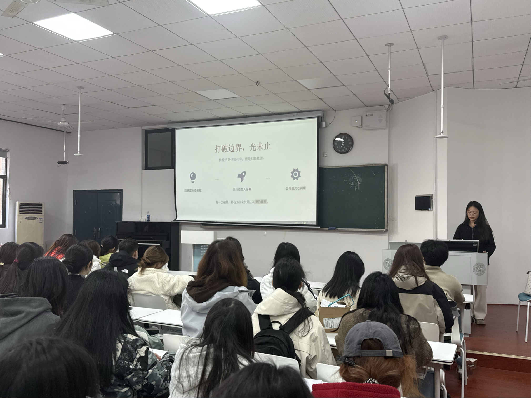 主讲人从传统音乐发展的当代困境出发,引导同学们探索其跨界创新之路。她以古筝与电子音乐的合作、古琴与新媒体的舞台交互、唢呐与摇滚乐的风格碰撞为例,具体阐释了不同乐器在现代语境下的转化路径。随后,她通过现场播放《孤勇者》古筝改编版、《青花瓷》二胡演绎片段等视频,引导同学们感受传统乐器在流行文化中的全新生命力。活动尾声,主讲人强调,跨界并非消解传统,而是借助现代的表达手段与新平台,让传统音乐以更生动、更亲切的方式呈现在大家面前,使其在当代焕发新的活力。同学们纷纷表示,通过丰富的视听实例,对传统音乐的当代价值有了更直观的认识,也激发了自身在专业学习中尝试融合创新的兴趣。