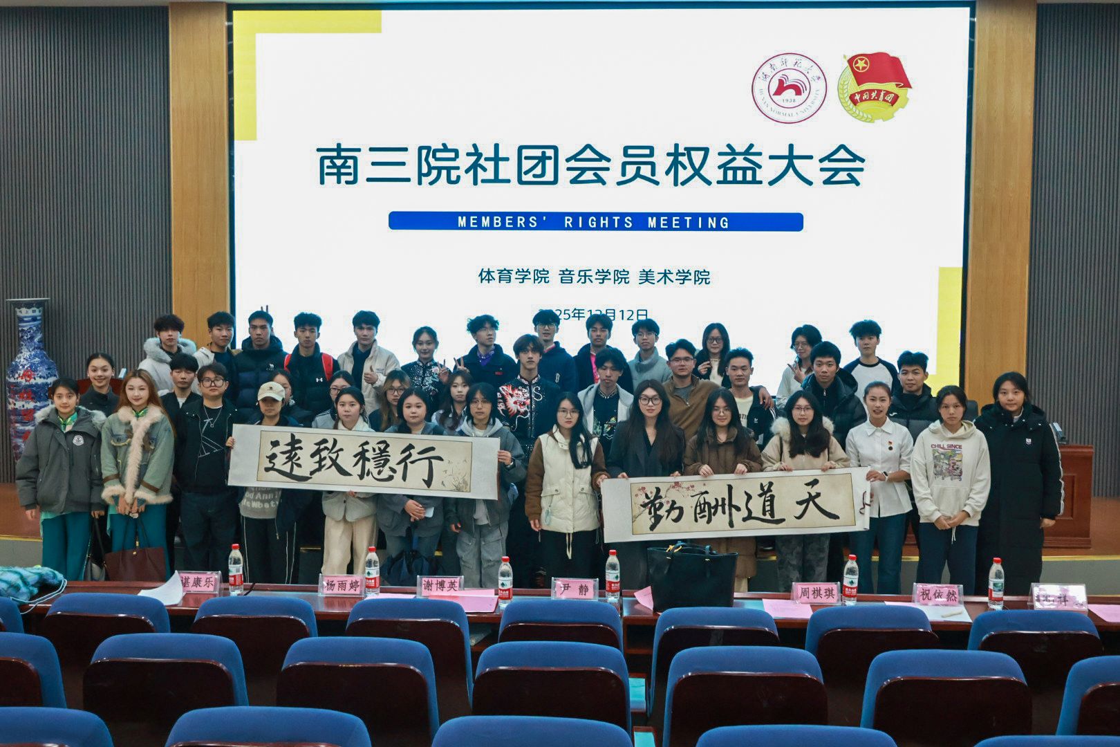 (通讯员 廖轩艺 周祺琪 马汇溪)304am永利集团、体育学院与美术学院学社管于 2025年12月12日中午12:30在体育学院行健楼二楼多功能报告厅联合举办南三院会员权益大会。校学社管监察部副部长尹静、304am永利集团学社管主任廖轩艺、体育学院学社管主任王宁、美术学院学社管主任谢博英参加此次会议,体育学院学社管主任王宁担任主持。