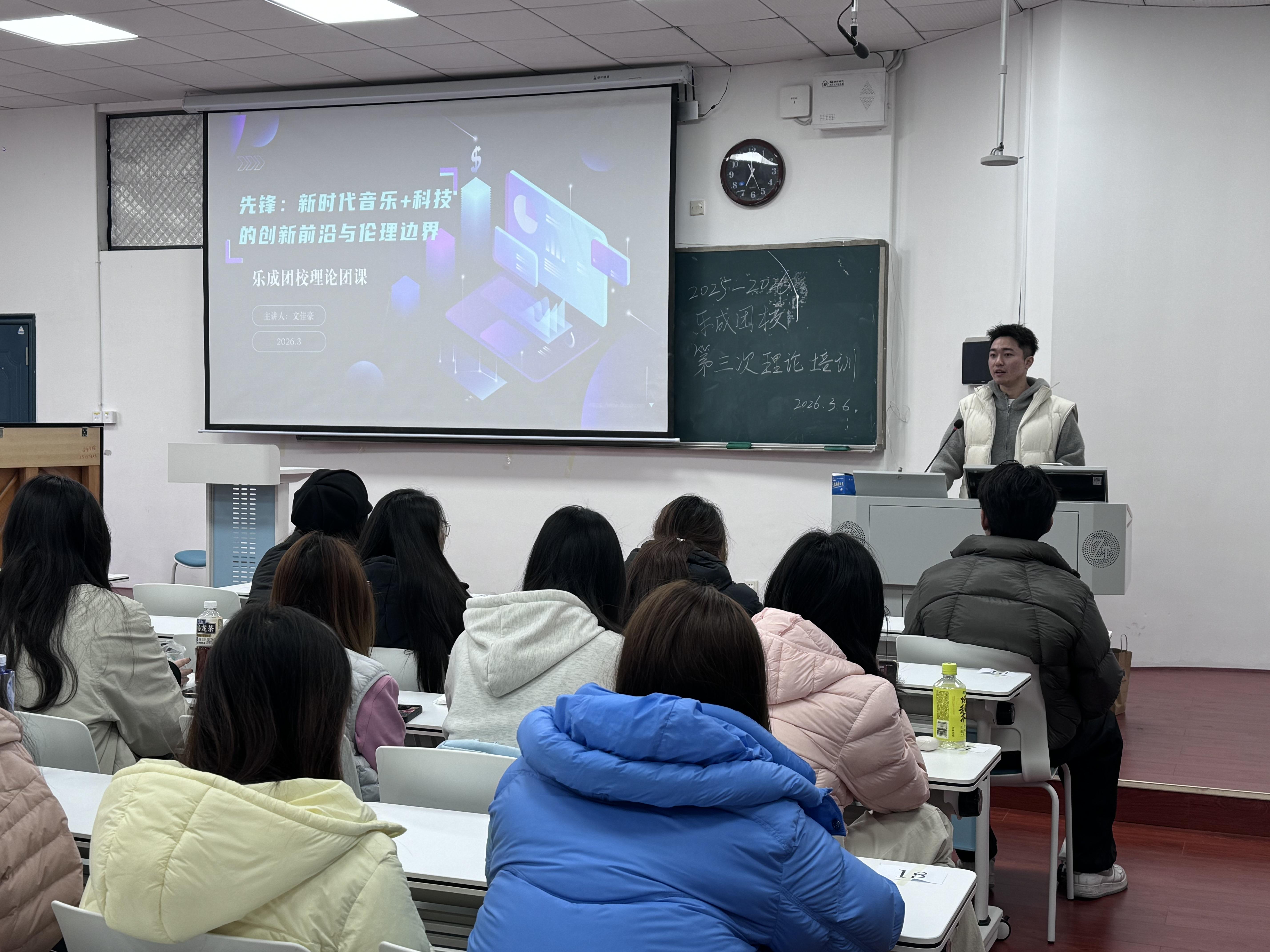 (通讯员 唐安雅 黄思涵 蔡雅丞)2026年3月6日中午,304am永利集团“乐成团校”在和乐楼308教室举办第三次理论培训课。本次课程由2023级辅导员文佳豪老师担任主讲人,学院各团学组织成员共同参与学习。