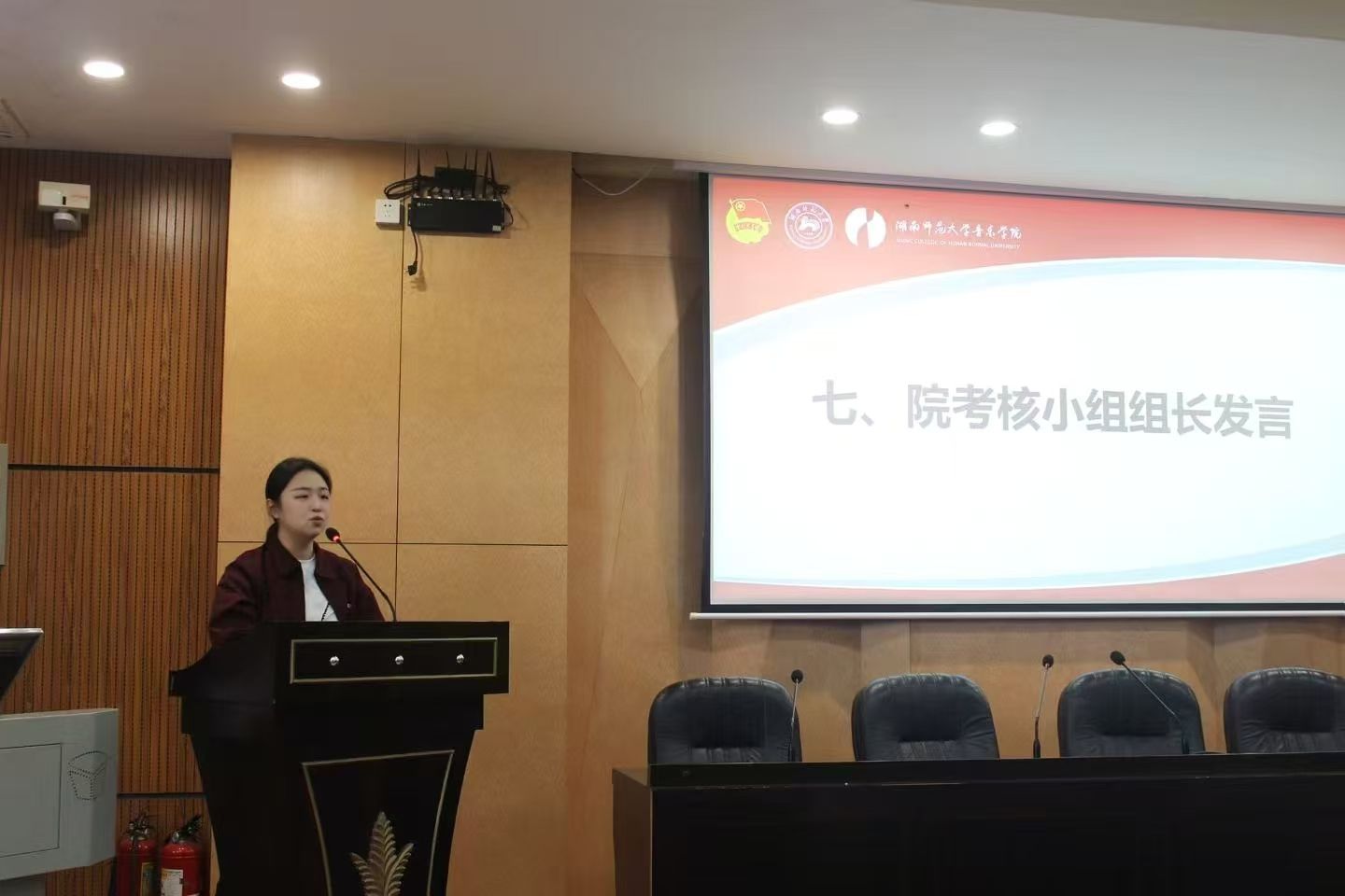 总结环节,本次考核小组组长、院团委书记李思达作总结讲话。她充分肯定了所有学生干部的述职汇报,以及过去一年学院全体学生干部为团学工作的辛勤付出,同时针对工作中存在的不足提出了改进要求,鼓励全体学生干部团结奋进、履职尽责,推动学院团学工作提质增效;勤学笃行、服务成长,在奉献中成就更好的自己。