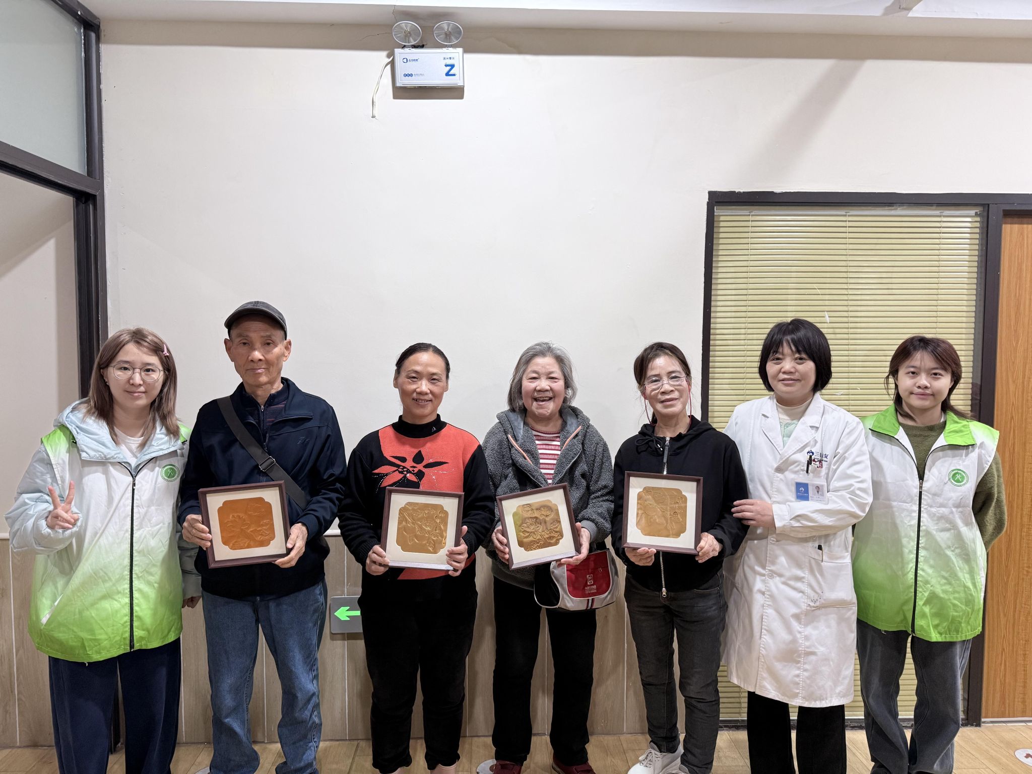 活动伊始,志愿者们向老人们详细介绍了铜箔画这一非遗传统工艺的历史渊源与文化内涵,并耐心讲解捶打、塑形、拼接、装框等完整流程的操作要点,帮助老人们快速熟悉制作要领。随后,在志愿者一对一的悉心指导下,老人们纷纷动手体验创作。从小心翼翼勾勒线条,到认真塑形捶打,再到最终完成装框收尾,每一个步骤都凝聚着大家的专注与巧思,现场氛围温馨而融洽。经过一个多小时的精心创作,一幅幅生动别致、栩栩如生的铜箔画顺利完成。老人们捧着自己亲手完成的作品,脸上都洋溢着收获的喜悦与满满的成就感。