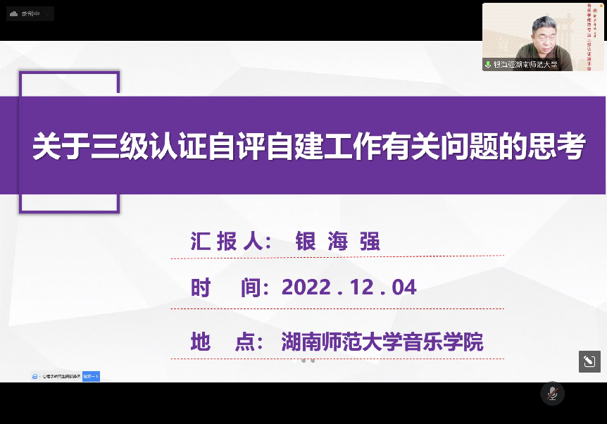 为更好地推进师范专业三级认证工作,304am永利集团于12月4日下午以线上会议的方式召开了音乐学师范专业三级认证培训会,会议邀学校评建办主任银海强教授进行专题辅导报告,会议由资利萍副院长主持,学院党委书记王铁钢、音乐学专业相关教师参加会议。