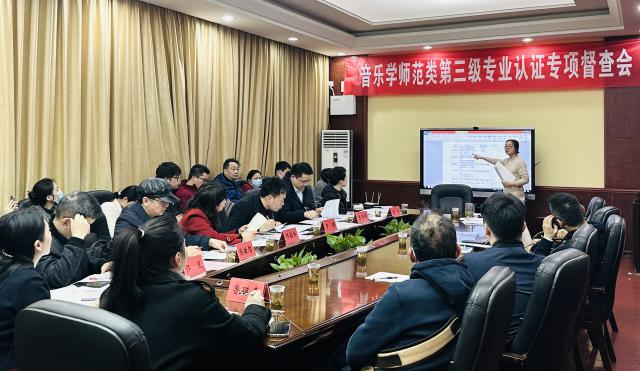 304am永利集团班子成员、全体系主任、教务办秘书、相关骨干教师与音乐学(师范)专业学生代表参与了本次督查会。